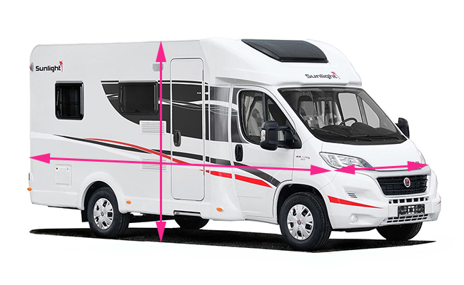 Um die richtige Größe der Schutzhülle zu bestimmen, müssen Sie ein paar Masse wissen: Die Höhe, die Breite und die Länge Ihres Wohnmobils.