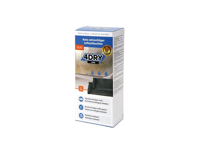 Der 4Dry Duo Luftentfeuchter ist 100% natürlich, kann in Auto, Boot, Wohnmobil, Keller, Garderobe, Schuppen und/oder Garage verwendet werden. Es ist einfach in der Anwendung und durch Regeneration in der Mikrowelle wiederverwendbar. Der Duo Luftentfeuchter leckt nicht, fühlt sich nicht feucht an und ist zudem reißfest und staubdicht.