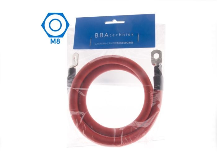 Das vorkonfektionierte Batteriekabel ist mit 2 M8-Kabelösen ausgestattet und mit einem Schrumpfschlauch versehen, der eine sichere und dauerhafte Verbindung gewährleistet. Durch die rote Farbe ist dieses Kabel in Ihrer Installation leicht zu erkennen.