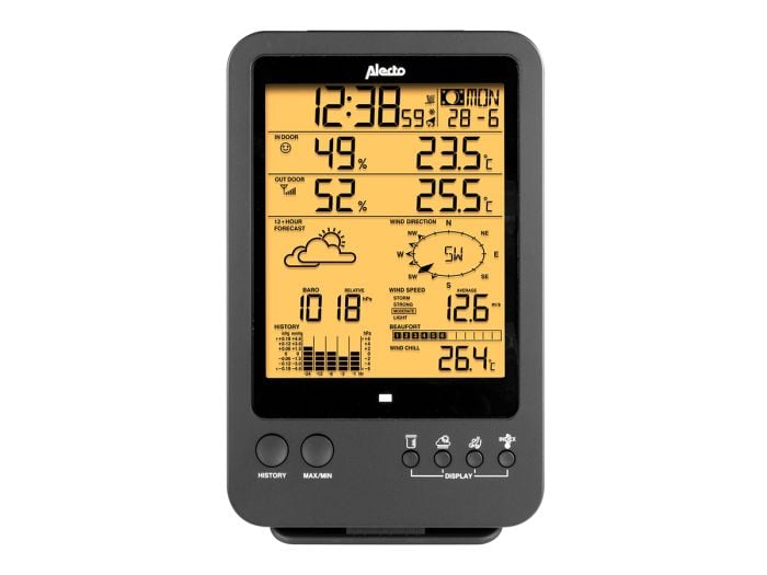 Wie genau wollen Sie Ihre Informationen, wenn es um das Wetter geht? Mit den folgenden Funktionen können Sie sich ein detailliertes Bild davon machen, wie sich das Wetter in naher Zukunft entwickeln wird. Denken Sie an sehr spezifische Messungen, wie z. B.:Der Taupunkt, ein Hitzeindex und eine Frostwarnung.Niederschlagsdaten pro Stunde, pro 24 Stunden, pro Woche oder pro Monat, ein Speicher für die Minimal- und Maximaltemperatur (die Sie selbst bestimmen) und ein Alarm, wenn einer dieser Werte überschritten wird, sowie eine Alarmfunktion mit Schlummerfunktion und eine Benachrichtigung, wenn die Batterie leer ist oder Sie sich außerhalb der Reichweite des Mastes befinden. Diese Reichweite beträgt übrigens 100 Meter auf einem offenen Feld. Und schließlich: Die Anzeigeeinheit ist für die Tisch- und Wandmontage geeignet. Mit dieser Wetterstation entscheiden Sie sich für ein intelligentes, flexibles und vielseitiges Gerät. Und mit Alecto entscheiden Sie sich für ein gut durchdachtes und benutzerfreundliches Produkt von hoher Qualität.