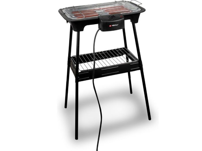 Möchten Sie den Alpina 2000W 2-in-1 Elektrogrill im Innenbereich verwenden? Dann füllen Sie den Behälter dieses Grills mit etwas Wasser. Die Anzeige im Behälter gibt an, bis zu welcher Höhe das Wasser eingefüllt werden kann, nämlich 0,3 bis 0,8 Liter. Das Wasser verhindert die Rauchentwicklung und hilft, die Grillpfanne abzukühlen. Außerdem sorgt das Wasser dafür, dass die Reinigung nach dem Grillen schnell und einfach vonstattengeht. Der Alpina 2000W 2-in-1 Elektrogrill ist mit einem abnehmbaren Untergestell mit Ablagefach ausgestattet, sodass Sie als Standmodell immer Platz für Ihr Werkzeug haben. Ohne Untergestell können Sie diesen Grill einfach auf den Tisch stellen. Der Grill verfügt außerdem über einen einstellbaren Thermostat, sodass Sie selbst bestimmen können, wie heiß Ihr Grill wird. Dadurch eignet sich der Grill auf der niedrigsten Stufe auch zum Warmhalten von Speisen. Durch das herausnehmbare Heizelement lassen sich der Grill und die Grillpfanne leicht mit warmem Seifenwasser reinigen. Der Alpina 2000W 2-in-1 Elektrogrill hat eine Größe von 43 x 35 x 60 cm und eine Leistung von 2 kW.