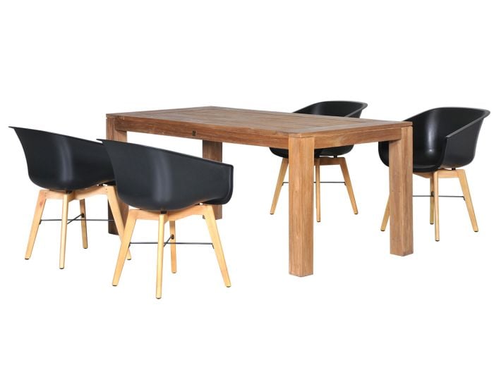 Sind Sie auf der Suche nach einem eleganten Holztisch in Kombination mit schönen Schalenstühlen? Dann ist dieses Diningset genau das Richtige für Sie! Dieses Set besteht aus vier Schalenstühlen von Hartman und einem Teakholztisch von Outdoor Feelings.
