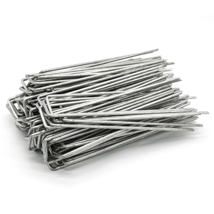 Hochwertige Heringe für Gartenfolie und alle Gartennetze, beste Befestigung für Unkrautfolie und Hühnerzaun. Mit der eckigen U-Form der Erdhaken können sie Bodenvlies besonders flach fixieren: Fast unsichtbar! Maulwurfsperre, Hasenzaun oder Vogelnetz: Mit den Bodenankern haben Schädlinge in Gemüsebeeten keine Chance. Kunstrasen oder Gartenvlies hält bombenfest.