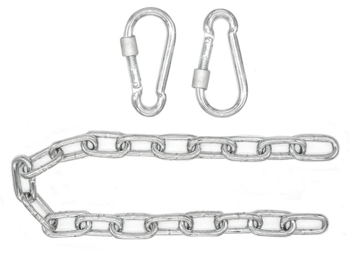 Unsere Verlängerungsketten können besonders schwere Lasten tragen. Die Karabinerhaken müssen immer fest verschraubt sein - achte zusätzlich darauf, dass auch der Deckenhaken extra tragfähig ist.
