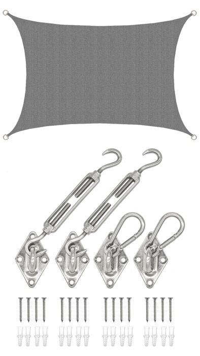 AMANKA Komplett Set: Atmungsaktives Sonnensegel mit Edelstahl Befestigung