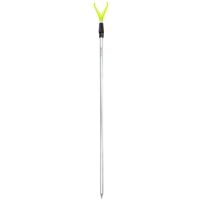 Dieser qualitativ hochwertige Rutenhalter ist aus Aluminium hergestellt und kann durch das Teleskop-System auf eine Höhe von 135 cm ausgezogen werden. Auf der Rutenstange ist eine V-Auflage mit Schnurlaufkerbe montiert.