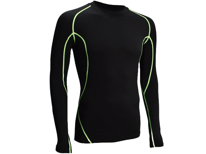Avento Langarm-Kompressions-Shirt Herren - Schwarz/Fluoro