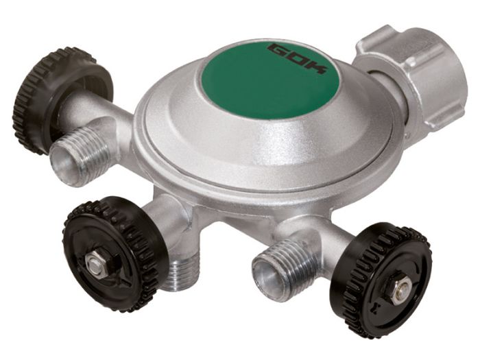 Der Din Trio-Druckregler ist ein Druckregler, der für Gasflaschen ab 5 kg mit drei 1 / 4 l Ausgängen verwendet werden kann.