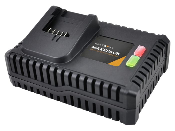 Mit dem 4-A-Schnellladegerät von Batavia laden Sie alle Ihre Akkus in fast der Hälfte der Zeit auf. Mit dem 4-A-Schnellladegerät können Sie alle Akkus der Maxxpack-Akkuplattform aufladen. Die Maxxpack-Akkuplattform ist eine flexible 18-Volt-Li-Ionen-Plattform für den Innen- und Außeneinsatz. Mit dem Maxxpack können Sie mehr als 30 Geräte mit nur einem Akku und einem Ladegerät nutzen.
