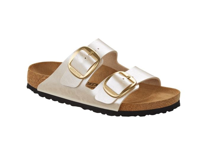 Der BIRKENSTOCK Arizona ist ein echter Klassiker, der Männer und Frauen seit Jahrzehnten mit seinem zeitlosen Design begeistert. Diese Variante kombiniert gleich zwei beliebte Designs. Sie zeigt sich mit dezenter Seidenglanz-Beschichtung und einer großen, eleganten Dornschnalle. Das Obermaterial besteht aus dem hautfreundlichen und strapazierfähigen Synthetikmaterial Birko-Flor®.