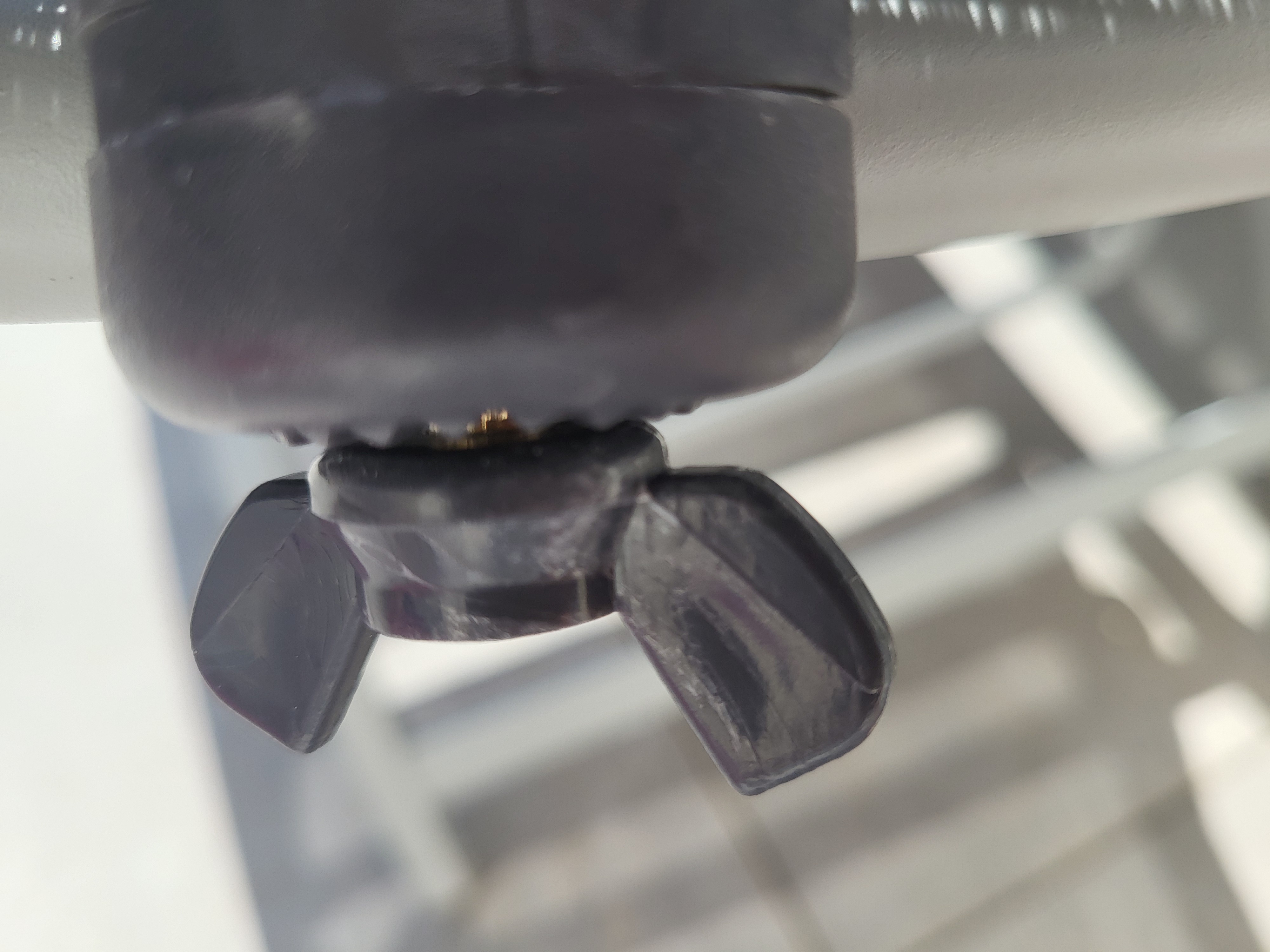 Dieser Sonnenschirm eignet sich für die meisten Campingstühle. Er kann einfach am Rahmen befestigt werden und kann dann in jede Richtung gedreht werden.