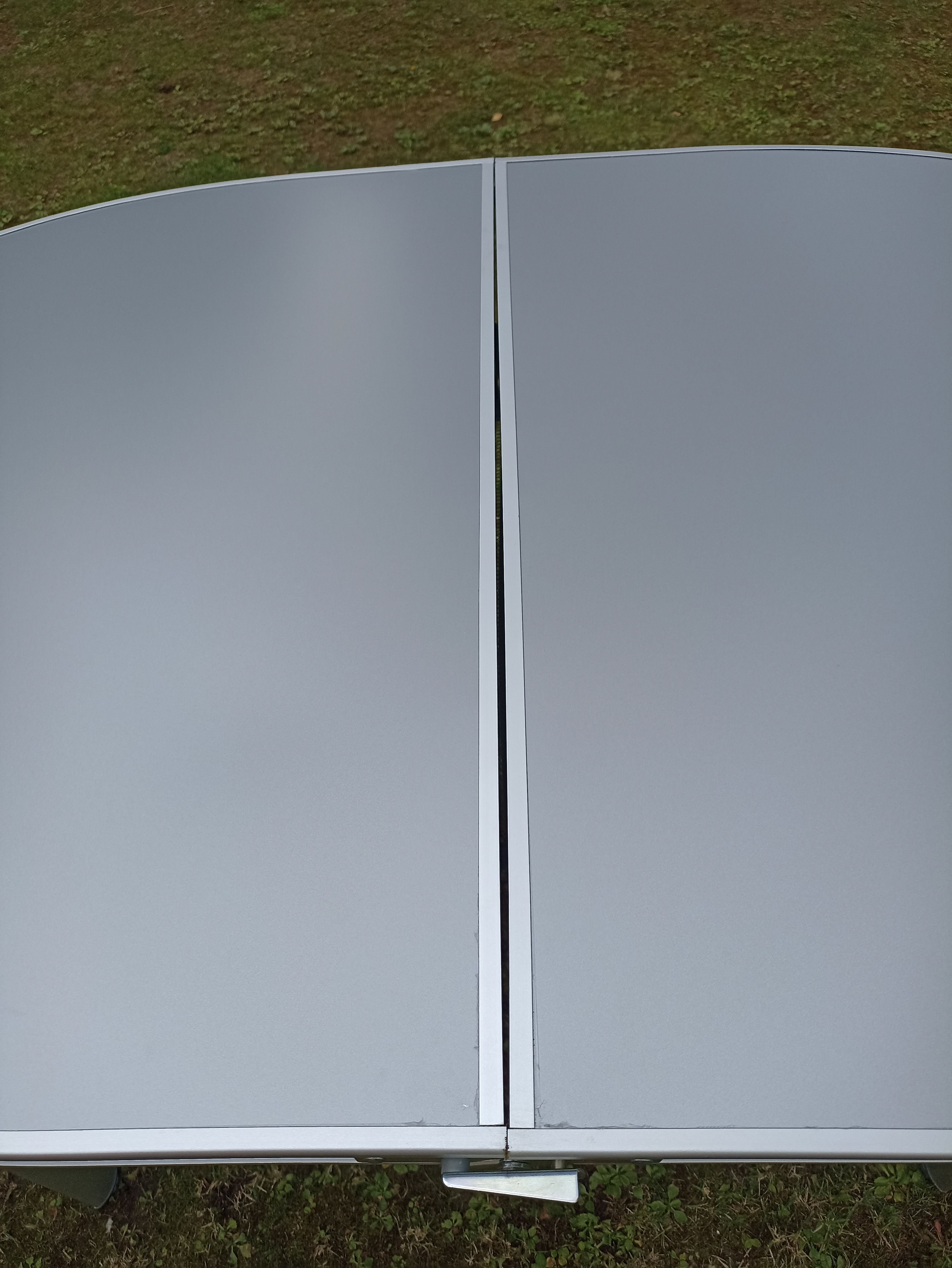 Teilbares Blatt, Handgriff, Aufbewahrungsnetz, Stellfüße, Verstellbarer Tischbeine