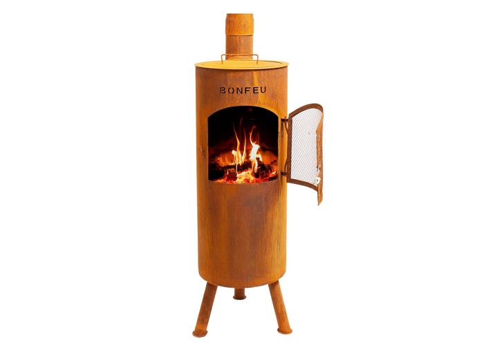 Der BonGiano Gartenkamin ist aus massivem Stahl mit hitzebeständiger Beschichtung gefertigt. Dank seiner Form und des hohen Schornsteins verfügt der BonFeu über einen hervorragenden Rauchabzug. Sie werden nicht so leicht durch den Rauch belästigt werden.