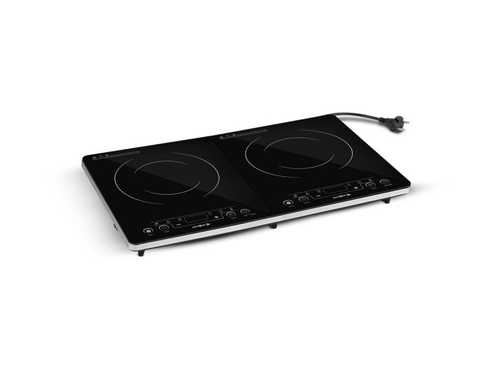 Tragbarer Induktions-Elektrokocher mit doppelter Kochplatte - die perfekte Lösung für den Einsatz im Freien und beim Camping. Er hat eine ultraflache Konstruktion mit einem hitzebeständigen Gehäuse und einer Kochfläche aus hochresistenter Glaskeramik. Die beiden Kochzonen haben jeweils 9 Leistungsstufen (die linke Zone von 300 W bis 1800 W und die rechte Zone von 300 W bis 1700 W), die über die Touch-Steuerung und das LED-Display ausgewählt werden können. Der Kocher ist einfach zu transportieren und zu verstauen und benötigt nur wenig Platz. Er ist auch sehr effizient und verbraucht wenig Strom.