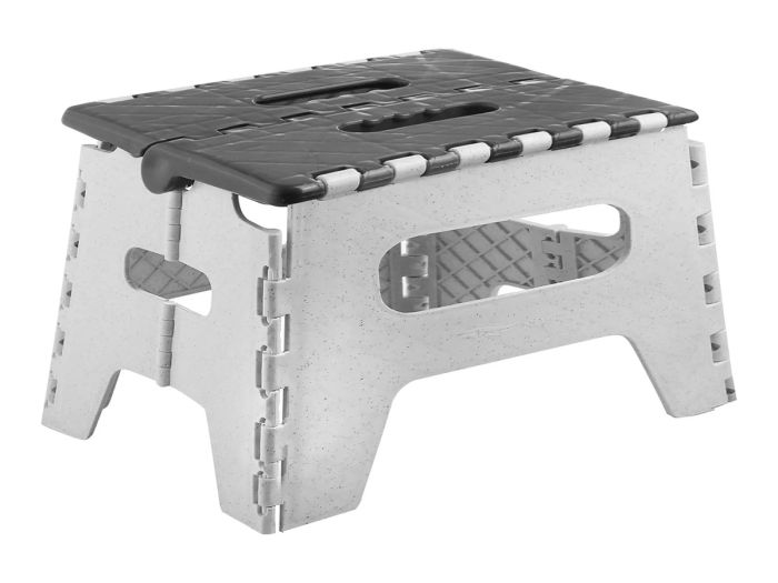 Eines der herausragenden Merkmale des Plyer Folding Step ist sein faltbares Design. Wenn er nicht in Gebrauch ist, lässt er sich auf eine kompakte Größe von 40 x 38,2 x 5,5 cm zusammenklappen, so dass er leicht zu verstauen und zu transportieren ist. Trotz seines geringen Gewichts von 1,3 kg trägt er eine maximale Last von 120 kg, was seine robuste Bauweise unterstreicht.