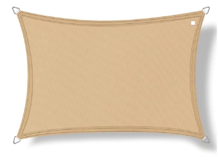 Genießen Sie den Schatten unter dem 3,5 x 4 Meter großen Buitenkado Rechteck-Sonnensegel . Dieses sandbeige Schattiertuch schützt vor UV-Strahlung und spendet Schatten, lässt aber dennoch Sonnenlicht durch und sorgt so für angenehmes Licht. Das wasserdichte Sonnensegel besteht aus 160 g/m² Polyester mit PU-Beschichtung. Mit aufgenähten Edelstahlringen statt eingestanzten Ösen gegen Ausreißen. Dieses hochwertige Material bietet mindestens 85 % Schutz vor schädlichen UV-Strahlen und hält Sie bei leichten Regenschauern trocken. Die Kanten des Sonnensegels sind fest doppelt vernäht und an jeder Ecke mit genähten Edelstahlringen ausgestattet, was die Gefahr des Reißens minimiert und eine jahrelange Lebensdauer des Tuchs gewährleistet. Die Größe eines Sonnensegels wird immer von außen berechnet Teil des Befestigungspunkts zum anderen äußersten Teil des Befestigungspunkts. Bitte berücksichtigen Sie eventuelle Maßabweichungen von wenigen Zentimetern. Um das Tuch schön straff spannen zu können, verläuft ein Schirmtuch immer leicht abgerundet nach innen.