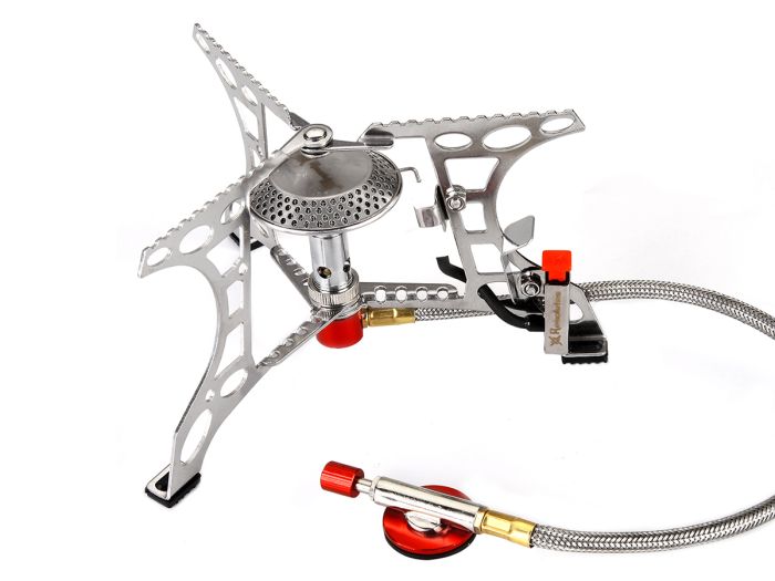 Der Wabennetz-Windschutz sorgt für eine stabile Flamme, und unser Outdoor-Gaskocher bietet eine beeindruckende Leistung von bis zu 3200 W, um Ihre Speisen gleichmäßig zu erhitzen. Mit diesem Gaskocher benötigen Sie nur 3 Minuten, um 1 Liter Wasser zum Kochen zu bringen.