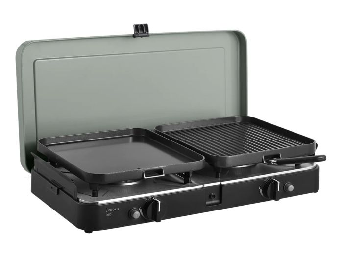 Mit dem Cadac 2-Cook 3 Pro Deluxe Kochgerät – 30 mbar können Sie gleichzeitig Nudeln kochen, Gemüse grillen und Kaffee zubereiten, und das alles mit einem einzigen kompakten und praktischen Campinggerät.