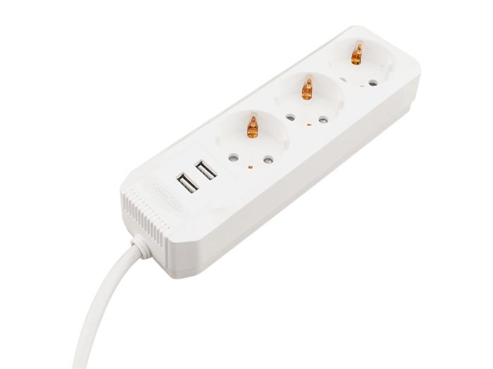 Die Caliber Powerstrip 3 USB Steckdose verfügt über drei Schuko-Steckdosen und zwei USB-Anschlüsse.