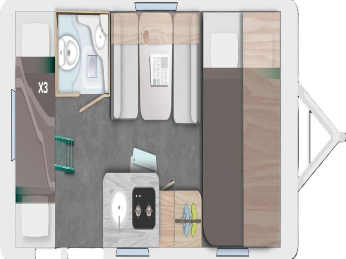 Dinette, Festes Bett, Mittelwaschraum, Schlafsofa, Seitenküche, Seitensitz, Querbett, Etagenbett quer, Kleiderschrank