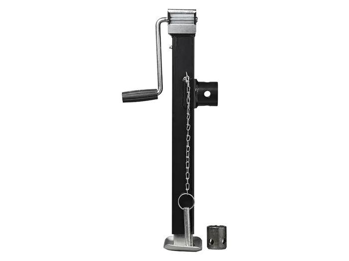 Stützfuß für Anhänger- oder Wohnwagendeichsel. Stabilisieren Sie Ihren Wohnwagen oder Anhänger schnell und einfach mit dieser Deichselstütze aus verzinktem Stahl. Wenn die Deichsel nicht mit einem Bugrad ausgestattet ist, ist dieser Stützfuß die Lösung. Mit Hilfe der Kurbel lässt sich die Stütze von 62 cm auf eine Höhe von 100 cm ausdrehen und ist mit einer maximalen Tragfähigkeit von 2500 kg für fast alle Deichseln geeignet. Spezifikationen: - Max. 2500 kg - Min. - Max. Höhe: 62-100 cm - Rohr: ca. 57 x 57 mm - Maße Bodenplatte: ca. 190 x 100 mm - Mit Seitenschlinger (nicht abnehmbar) - Ausdrehbar und klappbar - Inkl. Sicherungsbolzen - Inkl. verschweißbare Adapter / Flansch - Material: Stahl verzinkt/pulverbeschichtet