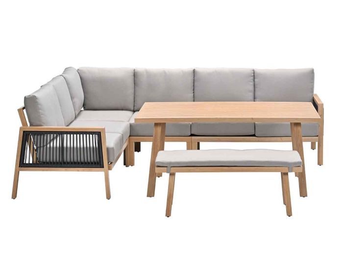 Sind Sie auf der Suche nach einer schönen Lounge-Essgruppe mit Holzoptik, aber nicht mit der Pflege des Holzes? Das San Capri Lounge-Essset könnte etwas für Sie sein!