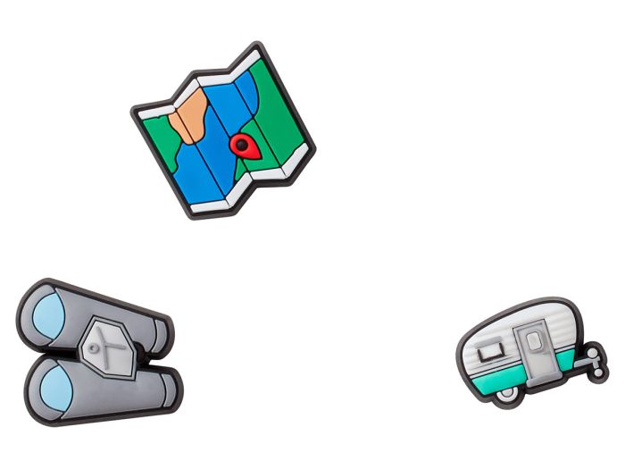Das Crocs On the Lookout 3-Pack Jibbitz ist ein 3-teiliges Set mit verschiedenen Reiseaccessoires.