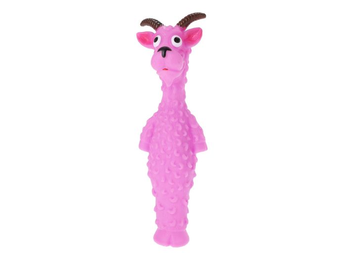Die rosa Ziege hat eine Länge von 23 cm und ist ideal zum Kauen und Apportieren. Das strapazierfähige Material sorgt dafür, dass Ihr Hund sicher spielen kann, während das Spielzeug zur gesunden Mundhygiene beiträgt. Außerdem enthält es eine eingebaute Quietsche, die für zusätzlichen Spielspaß sorgt und Ihren Hund noch mehr zum Spielen animiert.