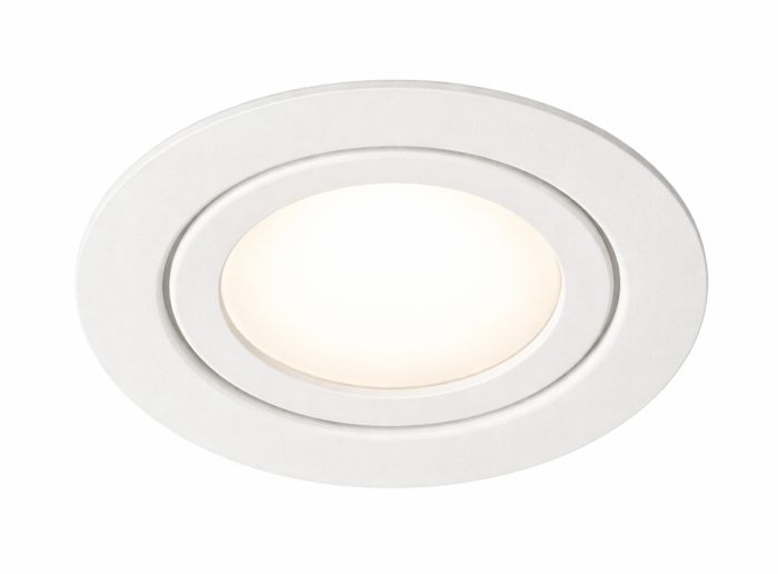 Der BBA Dometic Cario Einbauspot - white verfügt über einen silberfarbenen Rand und lässt sich einfach im Innenraum von Camper oder Wohnwagen montieren.