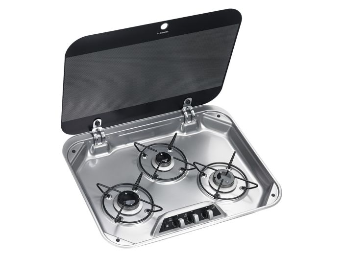 Das Dometic HBG 3440 ist ein 3-flammiges Kochfeld und ermöglicht das Kochen auf drei Brennern auf kleinem Raum. Das Kochfeld schließt nahtlos an die Arbeitsfläche an und wenn keine Pfannen auf dem Kochfeld stehen, können Sie die Glasplatte einfach schließen.