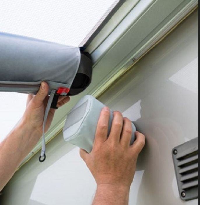 Bei Einsatz an der Markise (Wandmontage) ist das Distanzkissen-Set erforderlich. Die Distanzkissen werden mit Klettverschluss befestigt und schließen die Lücke zwischen dem Air-In Luftschlauch und der Reisemobil-Wand.