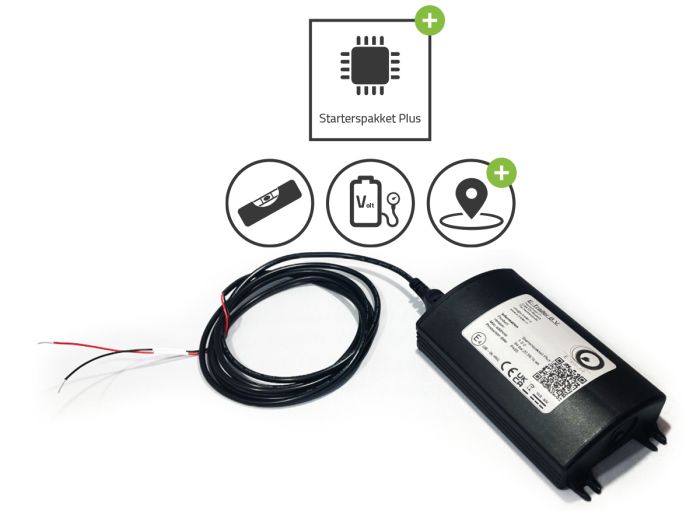 Zu den Sensoren im Starterpaket Plus gehören eine Wasserwaage, ein Batteriespannungsmessgerät und ein Track & Trace.