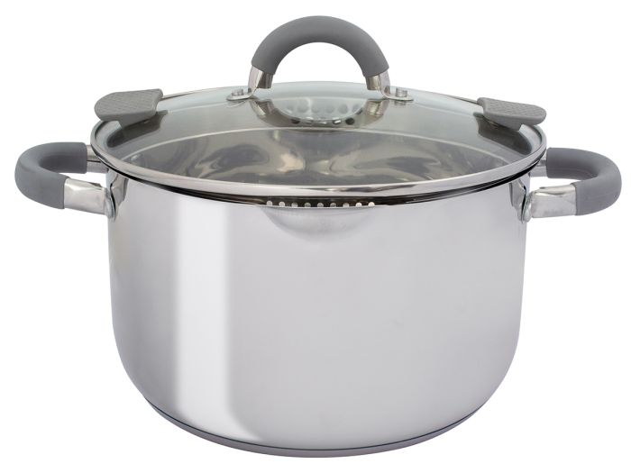 Kochtöpfe mit Glasdeckel. Lieverbar in 2 großen 3.5 und 4.5 Liter Inhalt. Der Deckel hat spezielle Silikon-Daumenstützen und die Pfanne hat einen speziellen Öffnung, der das Abgießen erleichtert. Die Griffe sind mit einem hitzebeständigen und schützenden Silikon versehen. Der Boden hat einen Capsule/Induktionsboden und ist daher für alle Wärmequellen einschließlich Induktion geeignet. Spülmaschinenfest..