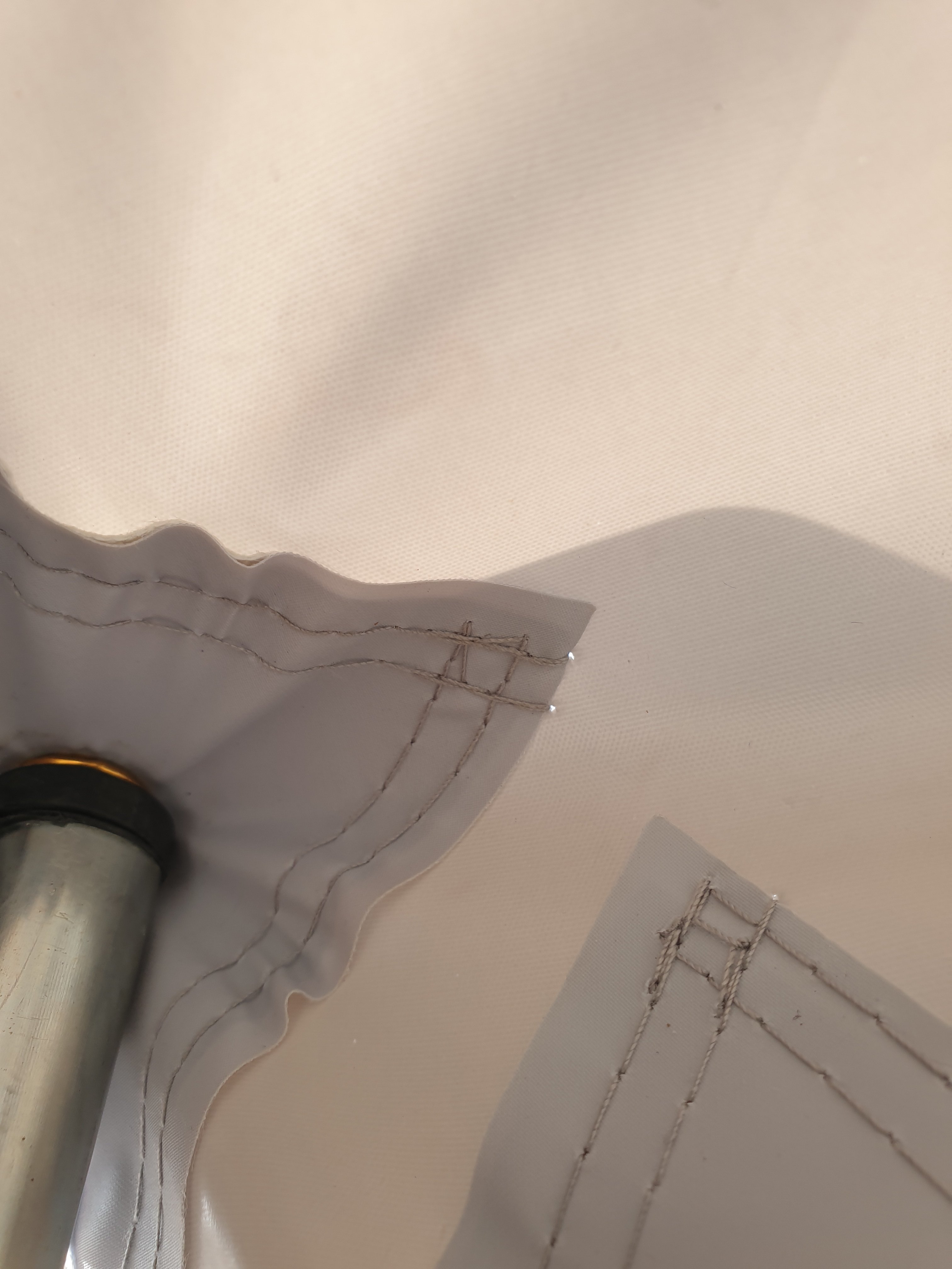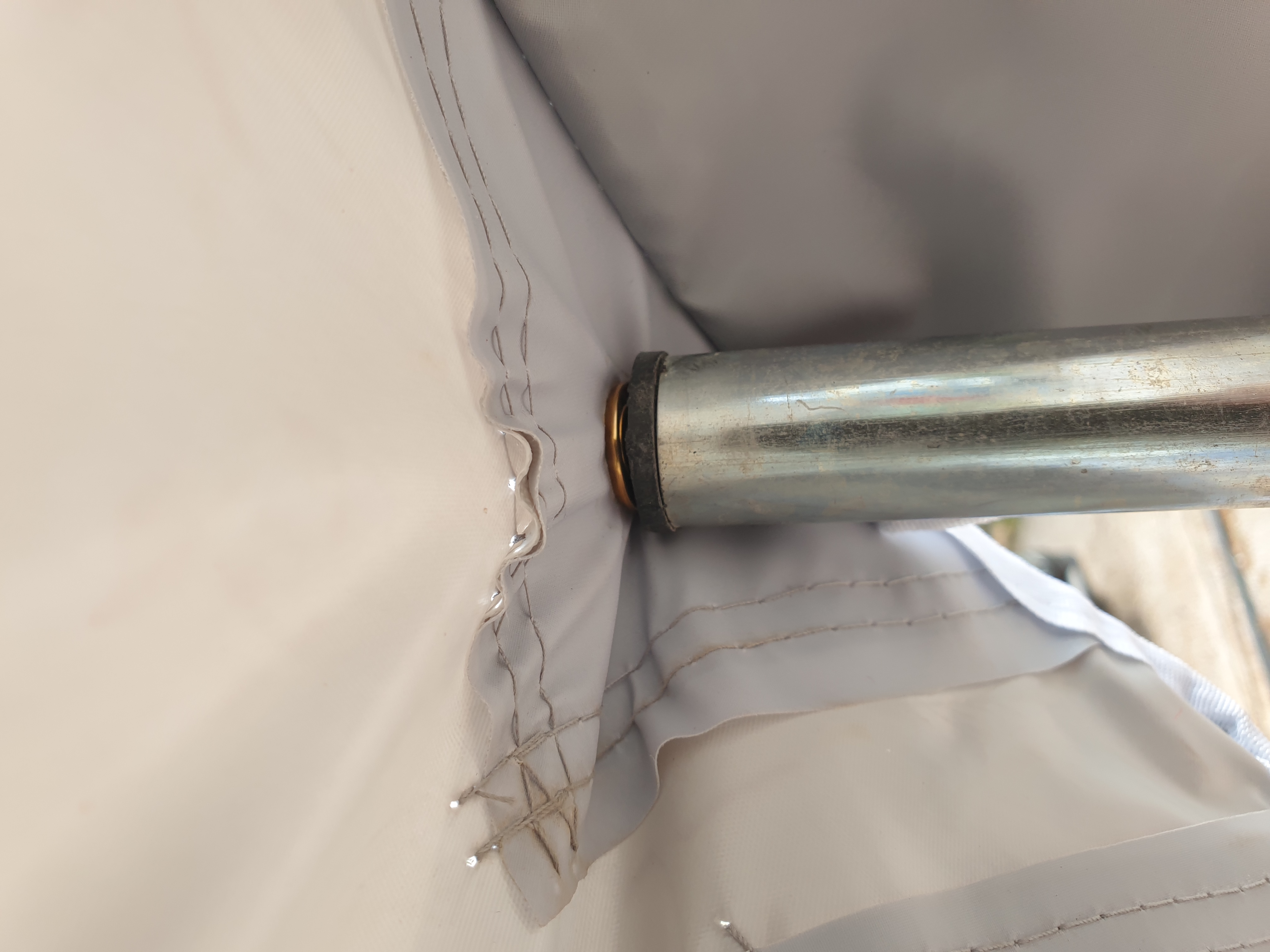 Eine Schnur am Keder zur Befestigung von (optionalen) Clips, in die Sie Dachbalken einhaken können. Dank dieser Schnur müssen Sie keine Ösen an die Wohnwagenwand schrauben, um Dachbalken zu verwenden.
