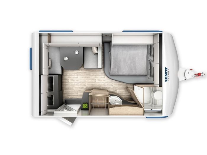 Festes Bett, Heckküche, Schlafsofa, Seitensitz, Französisches Bett, Eckwascharum, Kleiderschrank