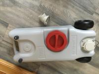 Der Wassertank besteht aus Plastik und die Räder aus Gummi. Deshalb kann der Tank einfach transportiert werden und ist leicht. Er hat einen Klappgriff und einen ergonomischen Kappenverschluss. Die Maße betragen 81 x 41 x 20 cm und er wiegt 3,9 kg.
