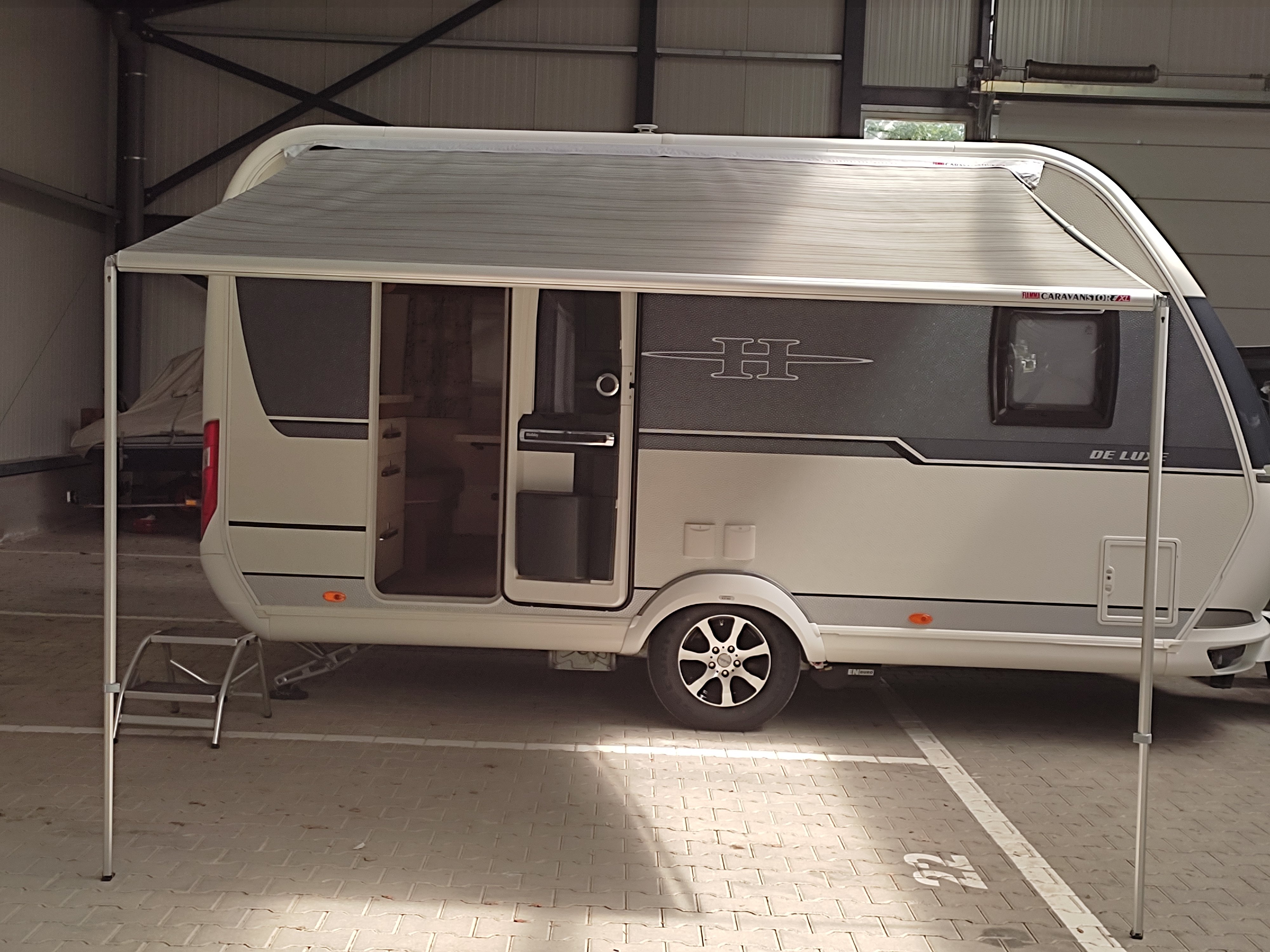 Für Sackmarkisen benötigen Sie keine Adapter. Sie werden mit einer Kederverbindung direkt in die Wohnwagenschiene geschoben.