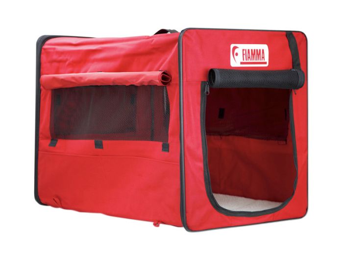 Die Fiamma Carry-Dog ist ein faltbare Hundebox geeignet für kleine und mittelgroße Hunde. Ausgestattet mit Moskitonetz, das für Belüftung sorgt. Die aufrollbaren Seiten sind mit Klettverschluss ausgestattet. Der Vorderseite ist für das Öffnen und Schließen der Hundebox mit einem Reißverschluss ausgestattet.