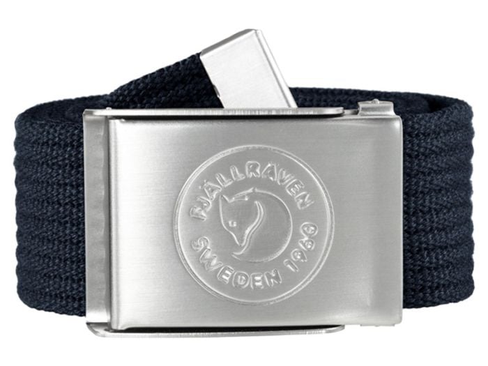 Der Gürtel ist aus Polyester gefertigt und hat eine Metallschnalle mit dem typischen Fjällräven-Logo. Die metallische Schnalle ist flach, sodass sie beim Tragen einer Hüfttasche oder eines Hüftgurts nicht im Weg ist.