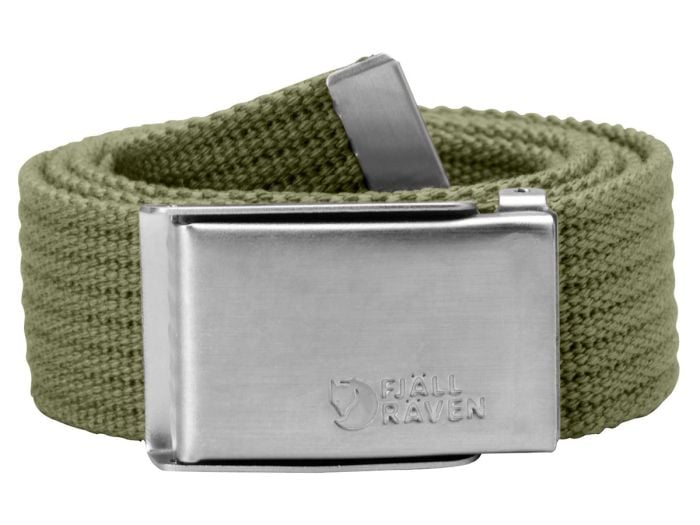 Der Fjällräven Canvas Gürtel hat eine Metallschnalle und ist in der Länge verstellbar.