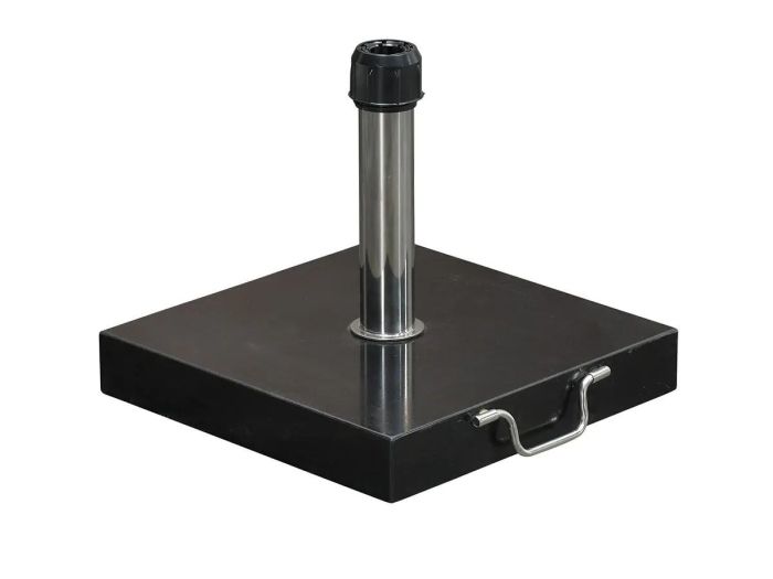 Dieser Sonnenschirmständer ist aus hochwertigem, poliertem Granit gefertigt: langlebig, wetterbeständig und pflegeleicht. Er ist für Stangenschirme mit einer Rohrstärke von 38 bis 55 mm geeignet und verfügt über ein Edelstahlrohr mit Drehknopf, mit dem Sie Ihren Sonnenschirm sicher befestigen können. Der Sockel misst 45 x 45 cm und ist 7 cm hoch (40 cm einschließlich Halterung).