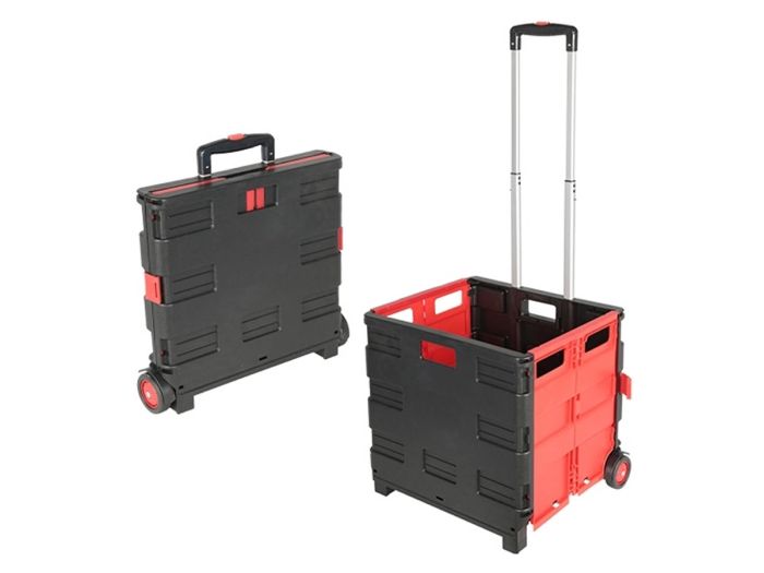 Einkaufen, leere Flaschen wegbringen oder über einen (Floh-)Markt schlendern. Diese zusammenklappbare Kiste ist eigentlich für alles zu gebrauchen. Ein ideales Utensil, das man immer zusammengefaltet oder einsatzbereit im Haus oder unterwegs dabei hat. Die faltbare Kiste hat einen ausziehbaren Griff, zwei leichtgängige Räder und zwei Stützen für den aufrechten Stand.
