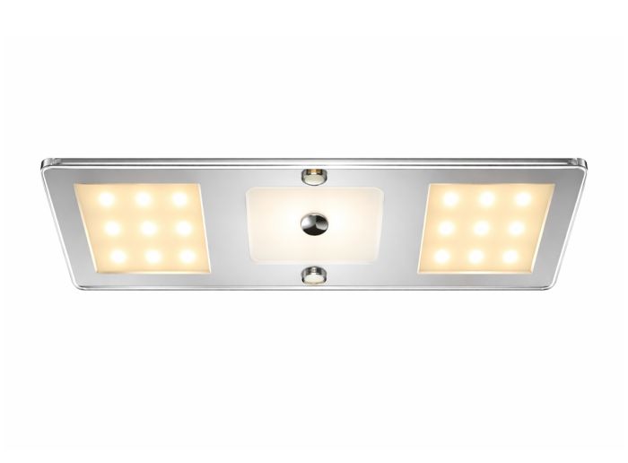 Die Plafonniere arbeitet mit 12 Volt und bietet eine Lichtleistung von 350 Lumen, gesteuert über die integrierte Touchfunktion.