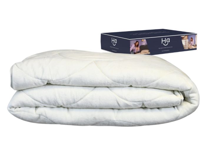 Die bequemste Bettdecke, die Sie je gefühlt haben. Genießen Sie eine mühelose Bettdecke ohne Bezug, ideal für jede Jahreszeit. Nie wieder Ärger mit einem Bettdeckenbezug Kühl im Sommer, warm im Winter Hypoallergen und daher Ihr bester Freund gegen Bakterien Hergestellt in Europa Die bequemste Bettdecke aller Zeiten Die HappyBed-Bettdecke wurde speziell entwickelt, um Ihnen den besten Schlaf Ihres Lebens zu ermöglichen. Das entspannte Gefühl der feinsten Mikrofasern fühlt sich von der ersten Sekunde an seidig weich an. Verabschieden Sie sich von klobigen Bettbezügen und wachen Sie jeden Tag ausgeruht und mit einem breiten Lächeln auf. Hypoallergen und schnelltrocknend Dank ihrer einzigartigen Zusammensetzung ist die Bettdecke nach dem Waschen in nur 1 bis 2 Stunden trocken. Außerdem ist sie leicht waschbar und hypoallergen, was sie zur perfekten Bettdecke macht, wenn Sie unter Allergien leiden oder einfach ein frisches Bett genießen. Denn was gibt es Schöneres, als in einem sauberen Bett einzuschlafen? Perfekt für alle Jahreszeiten Die einzigartigen, atmungsaktiven Eigenschaften der Bettdecke sorgen dafür, dass Feuchtigkeit und überschüssige Wärme leicht abtransportiert werden können. Damit gehören klamme und heiße Sommernächte und übermäßig kalte Winter der Vergangenheit an. Wir sagen nicht umsonst, dass die Bettdecke Ihr bester Freund in der Nacht ist, denn sie weiß immer genau, wann Sie etwas zusätzliche Wärme oder Kühle gebrauchen könnten. Risikofreie 30-tägige Testphase Weil wir wissen, dass der HappyBed-Bettbezug Ihren Schlaf erheblich verbessern wird, bieten wir Ihnen aus voller Überzeugung eine 30-tägige Probezeit an. So können Sie selbst erleben, wie schön es ist, mit einer HappyBed-Bettdecke zu schlafen. Ist es doch nicht ganz Ihr Ding? Das kann vorkommen. In diesem Fall schicken Sie die Bettdecke an uns zurück und wir überweisen Ihnen das Geld zurück. Sie haben also nichts zu verlieren!