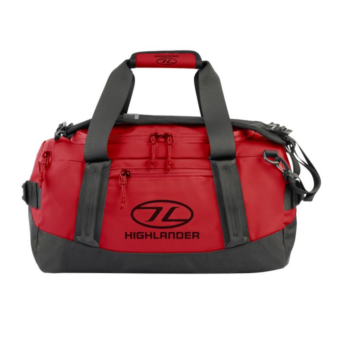 Die Highlander Sporttasche Hauler Duffel - 30 Liter ist eine geräumige, praktische und robuste Sporttasche aus äußerst strapazierfähigem 500D Tarpaulin – ein Muss für jedes Abenteuer. Das verwendete Material besteht aus schwerem Segeltuch und starkem Gurtband, wodurch die Tasche auf Reisen einiges aushält.