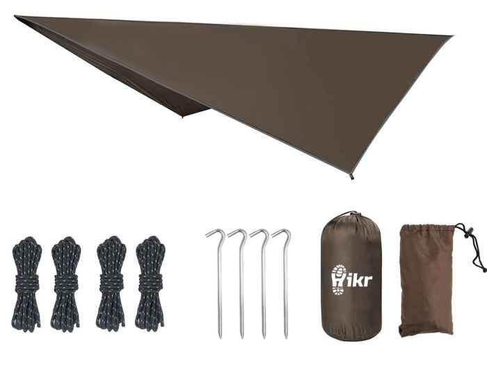 Suchst du einen zuverlässigen Schutz vor Regen, Wind und Sonne für deine Hängematten-Abenteuer? Das Hikr Hangmat Tarp bietet all das: leicht, kompakt und vollständig wasserdicht. Es passt perfekt zur Hangmat-Treewolf-Serie, sodass du selbst bei wechselhaftem Wetter komfortabel entspannen kannst.