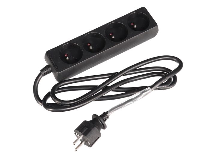 HQ-Power Steckdosenleiste, 4 Steckdosen Typ E, Kabel 1.5 m, 3G1.5, Schrumpfschlauch zum Etikettieren, Innenbereich, Schwarz