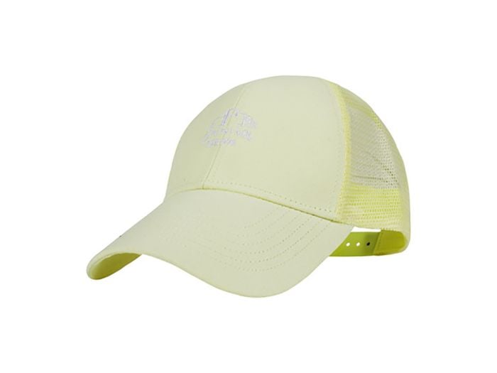 Das Trucker-Cap hat eine hohe Vorderseite aus Baumwolle, während der Rest aus recyceltem Polyester hergestellt ist. Das Cap hat einen Aufdruck auf der Vorderseite und die Größe kann einfach mit einer Schnalle auf der Rückseite eingestellt werden.