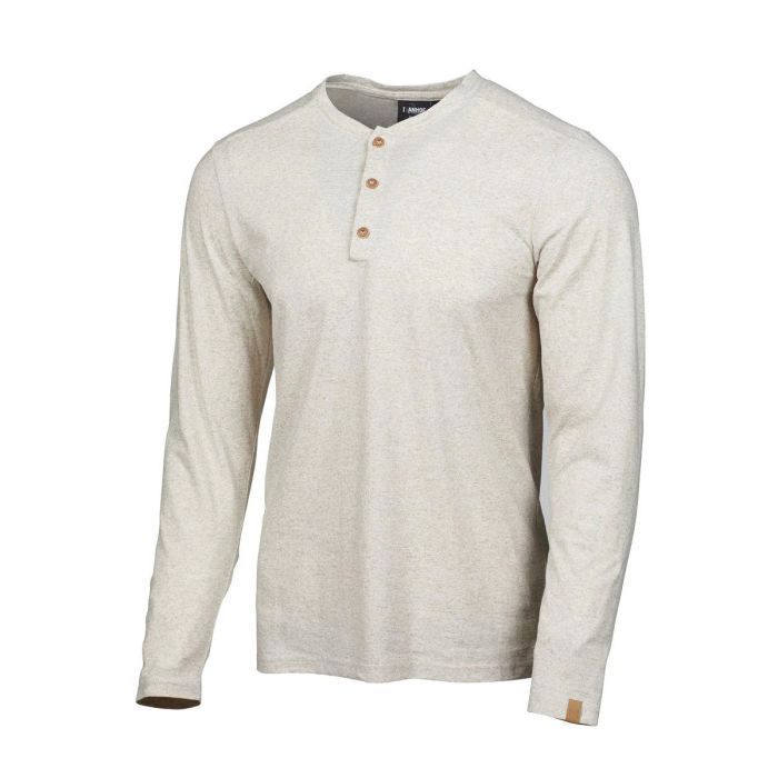 Das Ivanhoe Langarmshirt GY Eje hemp Naturmelange für Herren - Bio-Baumwolle - Beige ist eine schöne Mischung aus Bio-Baumwolle und Hanf. Aufgrund der unterschiedlichen Dicke der Fäden hat das Shirt einen schönen Slub-Effekt. Die drei Holzknöpfe an der Vorderseite runden das Shirt perfekt ab.