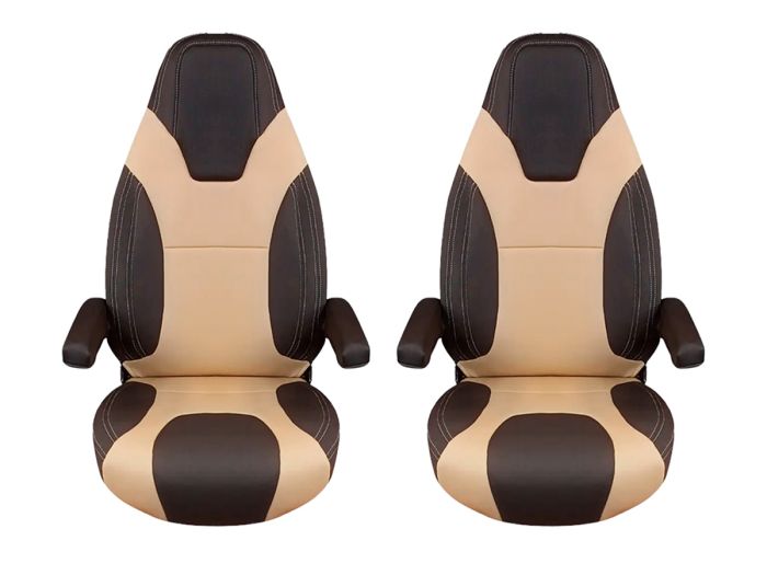 Paar Bezüge für Wohnmobile und Wohnwagen auf der Basis des Ducato Captain Sitz. Es handelt sich um einen exklusiv für dieses Sitzmodell maßgefertigten Bezug mit hervorragender Verarbeitung, ohne das Aussehen des Originalsitzes zu verändern. Die viskoelastische Kopfstütze und die spezielle Polsterung an der Basis des Sitzes machen Ihre Fahrten noch angenehmer.